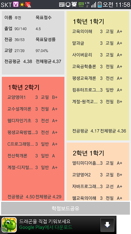 Informations 학점계산기-학점보드.성적관리.대학생.4.5 APK