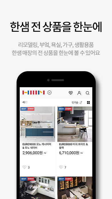 한샘 매장의 전 상품을 이제 모바일에서 만나보세요. 리모델링 공사 상품, 부엌&욕실, 가구, 생활용품까지 집 꾸밈에 대한 모든 아이템을 직접 확인해보세요.