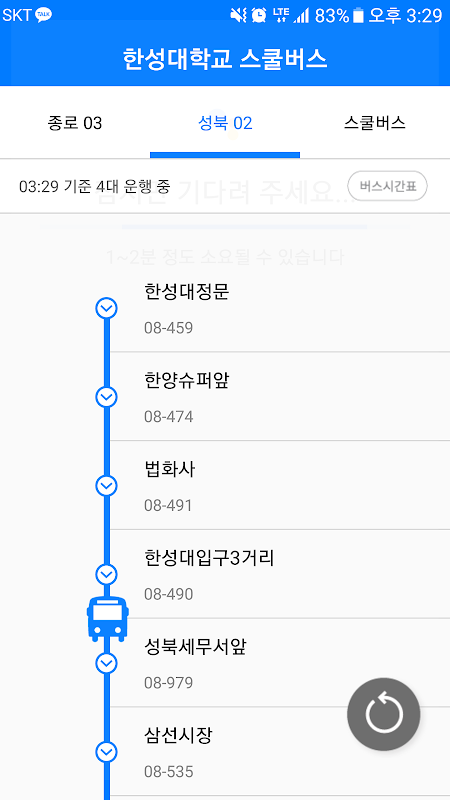 한성대학교 학생들을 위한 스쿨버스 확인 어플리케이션 입니다.스쿨버스 및 성북02, 종로03 버스의 위치를 확인할 수 있습니다.