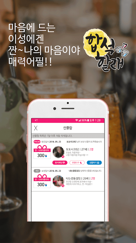 Hapseokhalae est une application de chat qui vous permet d'avoir une rencontre naturelle en buvant avec le sexe opposé dans votre quartier ou à proximité.