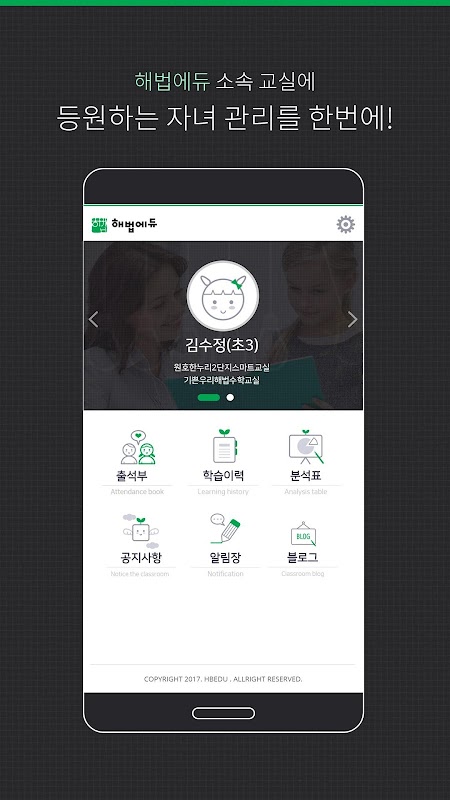 Les parents peuvent facilement l'utiliser à tout moment et en tout lieu pour gérer l'assiduité et l'apprentissage de leurs enfants qui suivent les cours de mathématiques solutions et d'anglais solutions, ainsi que les avis, rappels et newsletters.