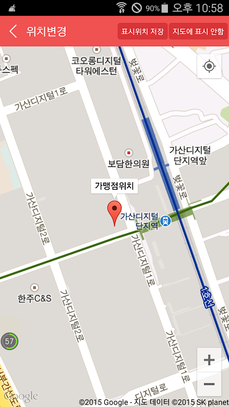 . 위치변경 지도위 "가맹점위치"->"위치" 로 수정