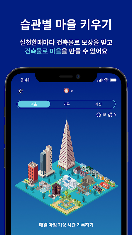 - 습관을 지속하면 할수록 성장하는 마을을 보며 성취감을 느껴보세요!