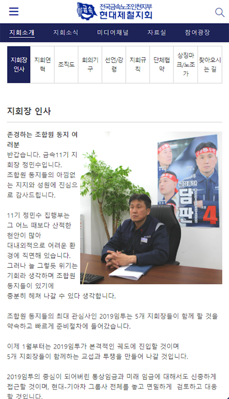 금속노조 인천지부 현대제철 노동조합 관련 소식을