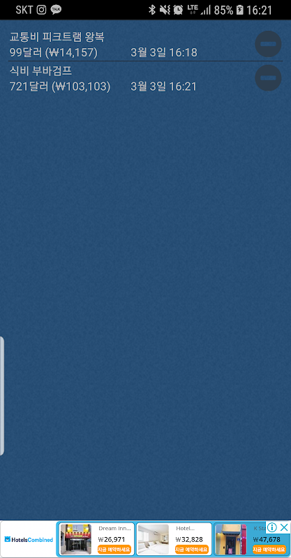 - 가계부 (원화 환산, 남은 경비 계산)
