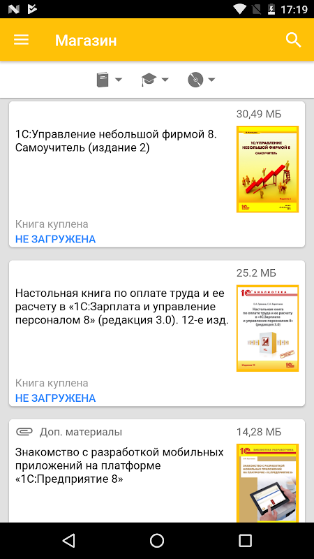 Также в приложении доступны все новые выпуски журнала БУХ.1С и другая, выпускаемая фирмой "1С" литература.