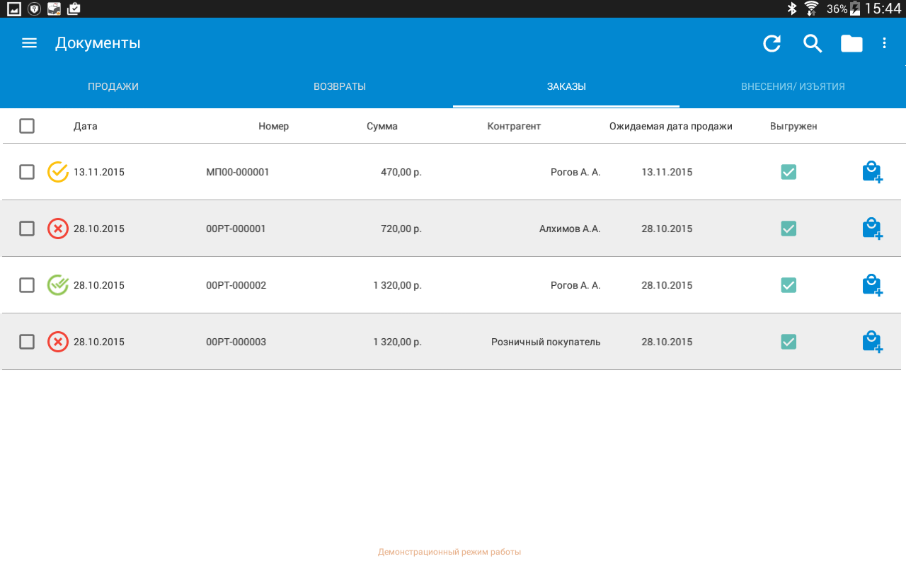 Vieilles versions de 1С-Рарус:Мобильное РМК