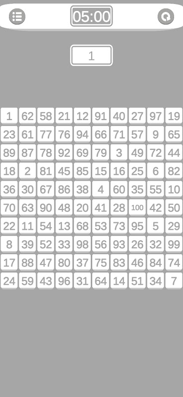 Appuyez sur l'ordre des chiffres de 1 à 100 pendant 5 minutes.