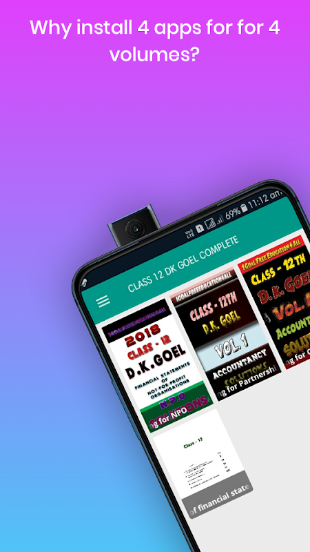 Nous savions que les étudiants avaient du mal à installer différentes applications pour des solutions de différents volumes de la classe de comptabilité DK Goel 12e. Nous avons donc développé cette application où les étudiants peuvent trouver toutes les solutions 4 livres dans une seule application.
