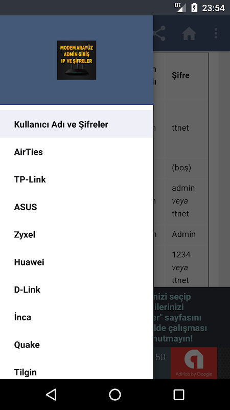 Uygulama içerisinde modem arayüz sayfaları olduğu gibi bu sayfaların kullanıcı adı ve şifreleri de yer almaktadır. Şifrenizi değiştirmiş ve unutmuşsanız da uygulamamızdaki bilgilerden faydalanarak tekrar şifrenizi öğrenebilirsiniz.