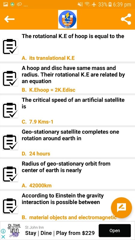 Application de test de QCM de physique de première année pour les étudiants FSc et tous les tests de QCM