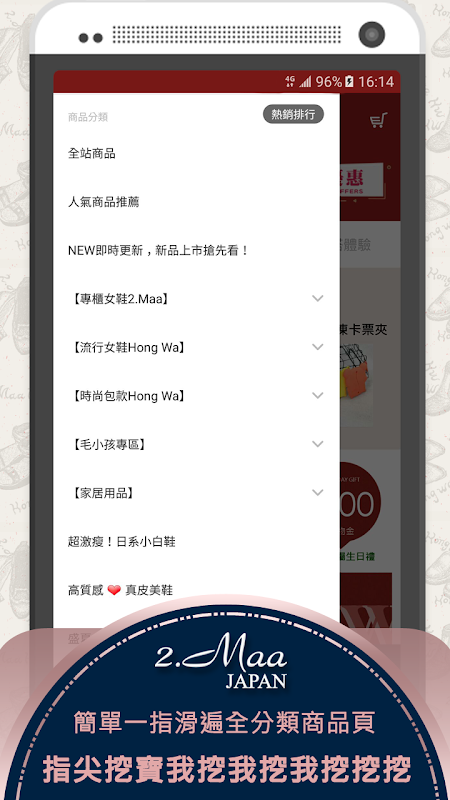 2.Maa官方行動購物APP,專為手機用戶推出的購物軟體,方便選購美鞋。具備24小時行動購物、全系列商品型錄瀏覽、高清畫質商品細節圖,即時優惠活動訊息推播。