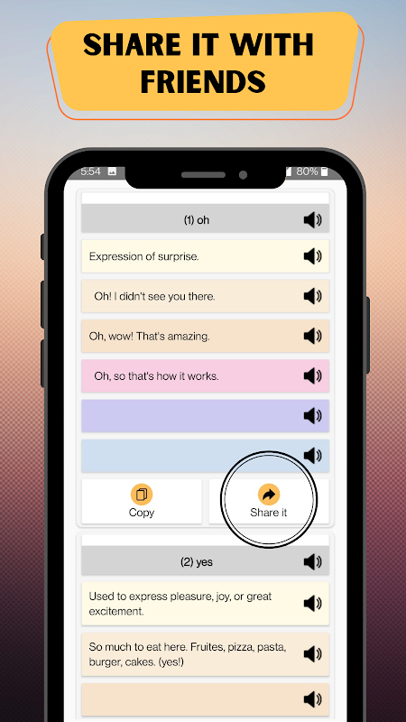 Lorsque vous effectuez une recherche sur Internet à propos des interjections, vous obtenez une liste de 10 ou 20 interjections maximum, mais il y a plus de 3000 interjections, nous avons filtré la liste et créé cette application avec les 2000+ interjections les plus utiles.