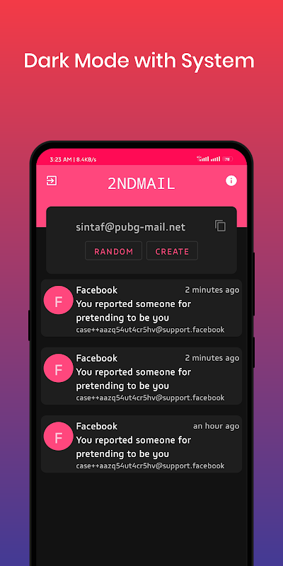 2ndMail is a free app for Android devices that provides temporary email addresses to keep spam away from the inbox. It is very easy to use and it comes with a list of different domains.