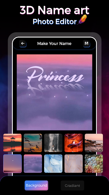 Text Art Maker aide à créer un texte de nom où vous pouvez concevoir une photo avec des illustrations de texte 3D et des légendes 3D.