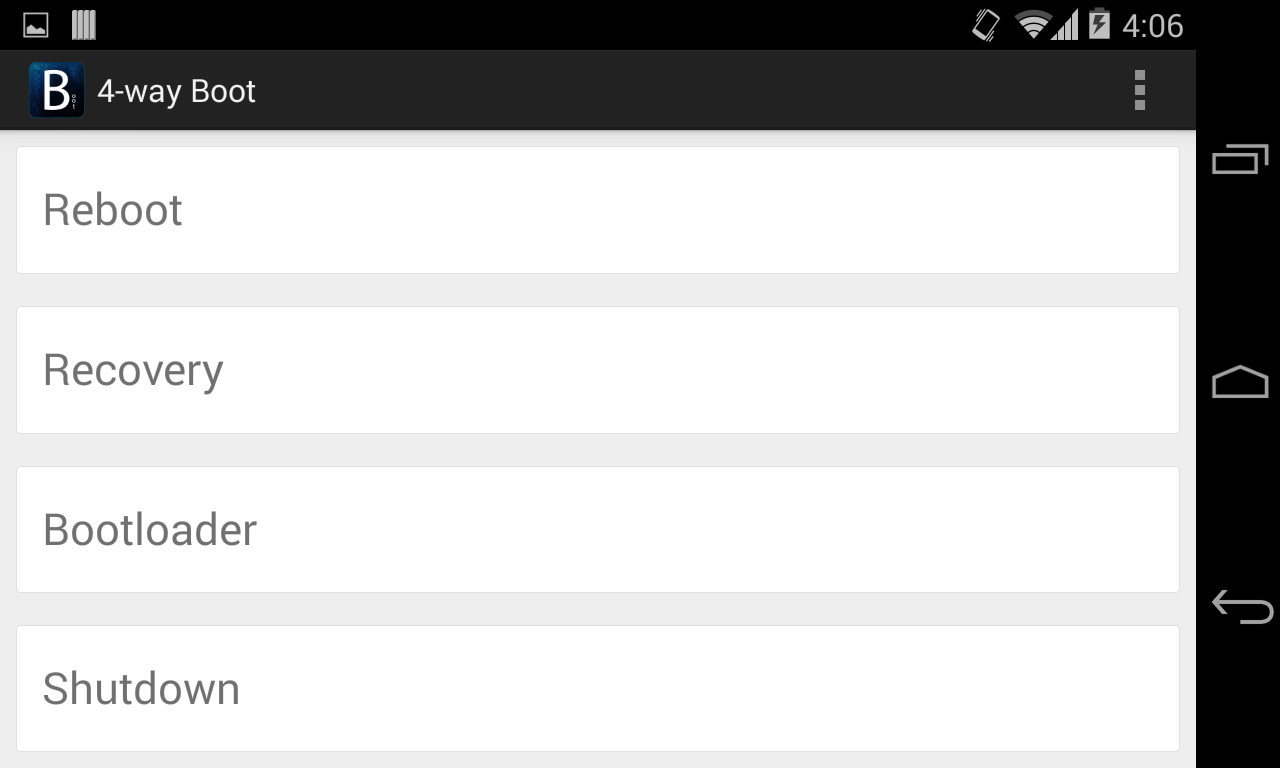 Then this app is for you,just a single click and you reboot your device, power off your device, or boot device into recovery or bootloader mode.