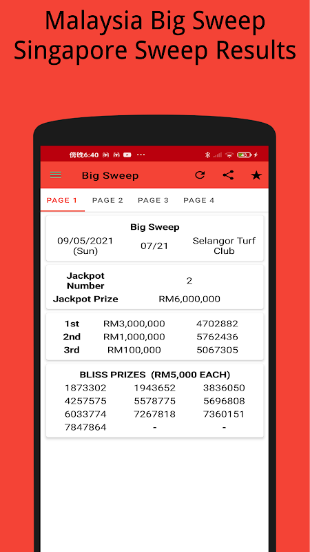 - 📅 Consulter les résultats des tirages 4D et Big Sweep précédents à tout moment ;