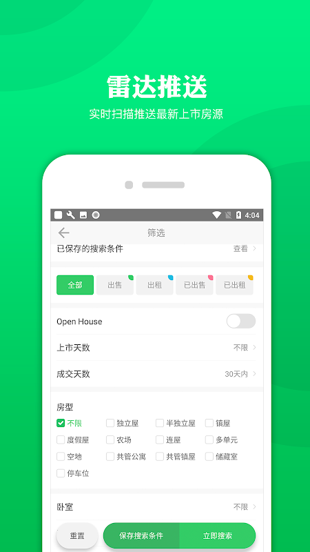 -- 定制服务:我的listing,雷达推送,推荐房源,个人名片