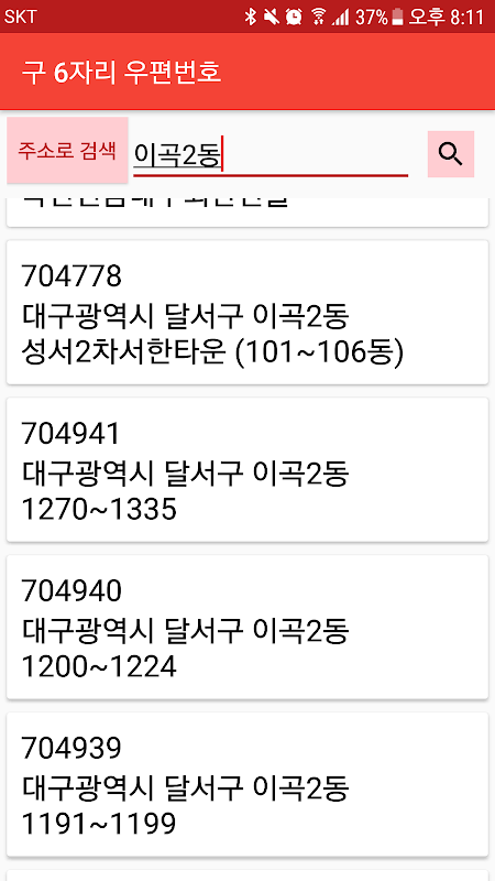 옛날에 사용하던 6자리 우편번호를 찾을 수 있습니다.