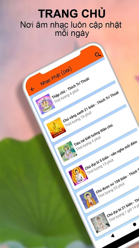 Vous êtes une personne avec un esprit orienté vers Bouddha, avez une foi authentique en Bouddha, vous avez l'habitude d'écouter de la musique bouddhiste chaque fois que vous avez du temps libre ou lorsque vous êtes fatigué au travail. Vous voulez une liste de chansons bouddhistes à écouter sans avoir à vous connecter à Internet. Comprenant ce besoin, nous Bouddhisme Store a lancé de nombreuses applications de musique bouddhiste hors ligne pour vous permettre d'écouter de la musique à votre guise. Vous avez juste besoin d'une simple opération sur votre appareil Android pour avoir une liste complète d'applications parmi lesquelles choisir.