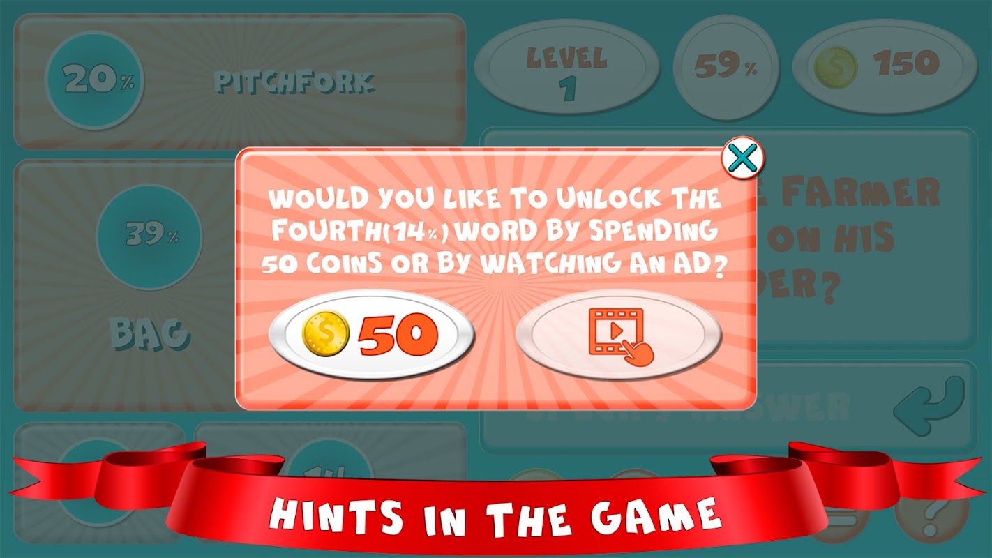 Le quiz sans Internet à 94 pour cent contient de nombreux niveaux passionnants. Pour toutes les questions, vous devez essayer de saisir les réponses saisies par d'autres utilisateurs. Par exemple, vous avez une question : « Un objet dans la salle de bain » - les réponses seront : brosse à dents, serviette, savon, shampoing, etc. Autrement dit, vous devez saisir non pas la bonne réponse, mais ce que pensent les autres. Chaque mot a son propre pourcentage, votre tâche est de marquer le nombre de points requis pour le niveau, il sera alors considéré comme réussi. 90 pour cent ne vous permettent pas d'ouvrir un autre niveau. Dans les jeux d'association logique, 94 % des réponses ne sont pas sans ambiguïté, il faut donc une bonne imagination, de la logique et de l'ingéniosité. Le joueur a toujours accès à 5 niveaux ouverts, en passant l'un d'entre eux, un autre niveau s'offre à lui. Au début du jeu, 150 pièces de jeu sont prévues à l'esprit, en passant un niveau, vous pouvez toujours gagner de 50 à 120 pièces. Il existe des astuces dans les jeux intellectuels en ligne que vous pouvez utiliser à tout moment. Vous pouvez ouvrir la réponse pour obtenir des pièces de jeu ou pour regarder des publicités.