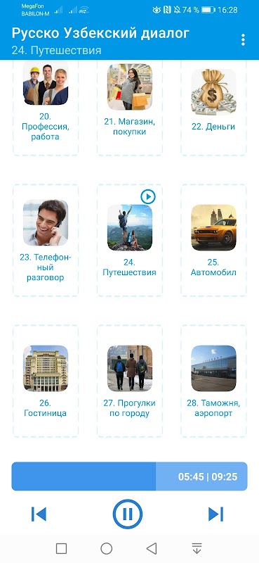 L'application améliore votre capacité à communiquer en langue russe (ouzbek) avec des dialogues