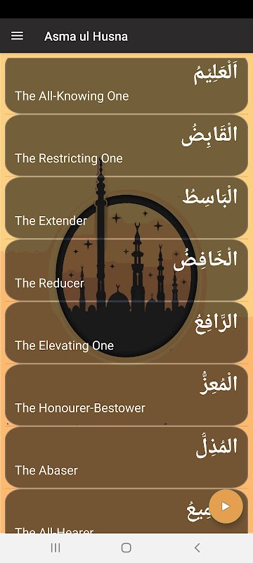 ALLAH and Hazrat Muhammad (Last Prophet of ALLAH) have 99 Beautiful and meaningful names or Asma ul husna and Asma ul Nabi. Allahis the supreme of all. Allah has 99 beautiful names but ALLAH is the most beautiful, meaning full and power full name amongst all. All 99 names of ALLAH have beautiful meaning such as one of the names of ALLAH is Ar-Rehman meaning “The All-Compassionate”. Another name of ALLAH is Al-Quddus meaning of which is “The Pure One”. Another name of ALLAH is As-Salam meaning of which is “The Source of Peace”. So all names of ALLAH describe his qualities. Muhammad has 99 beautiful names but Muhammad is the most beautiful, meaning full and power full name amongst all. All 99 names of Muhammad have beautiful meaning such as one of the names of Muhammad is Aadil meaning “The Justice”. Another name of Muhammad is Aalim meaning of which is “The Scholar”. Another name of Muhammad is Afoow meaning of which is “Forgiver”. So all names of Muhammad describe his qualities. 99 Names of Allah or 99 Names of Muhammad app is totally free of cost with audio feature. For Muslims Names of ALLAH and Names of Hazrat Muhammad SAW has great importance. This application helps you to recite or learn 99 Names of ALLAH and Muhammad. This application contains 99 names of ALLAH and Muhammad in Arabic along with English and Urdu Translation.