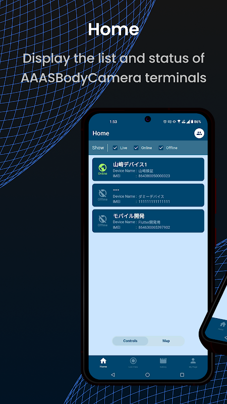 ・Affichez une liste des appareils AAASBodyCamera de votre groupe
