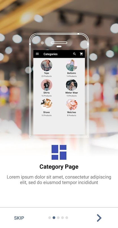 Modèle d'interface utilisateur Ecommerce pour Android avec un style de navigation inférieur.