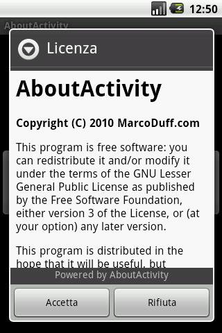 AboutActivity is an open source utility for all Android developers for the management of the about dialog of their programs.