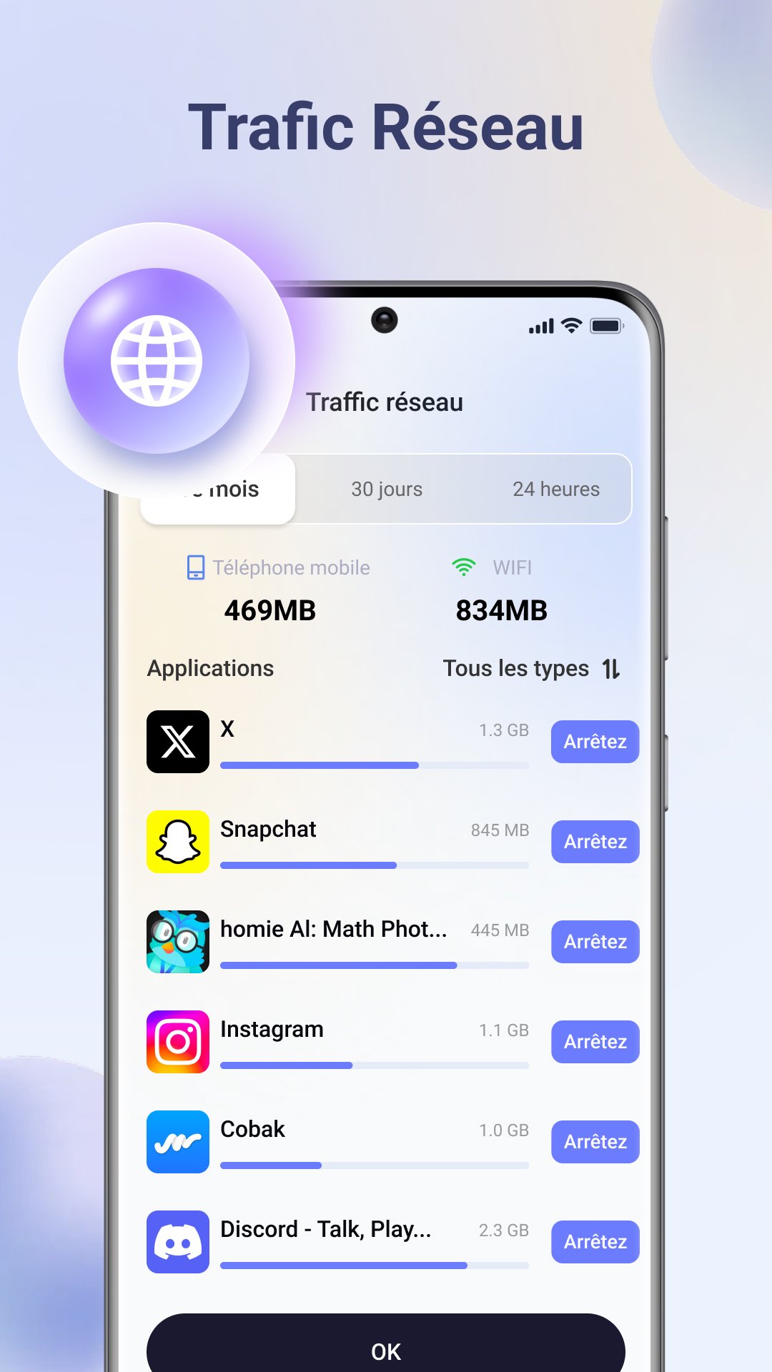 Vérifier l'espace de stockage et l'utilisation des données de chaque application