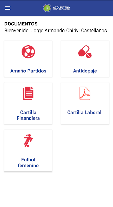 Dans l'application officielle de l'Association colombienne des footballeurs professionnels (ACOLFUTPRO), vous pouvez accéder en tant que membre :