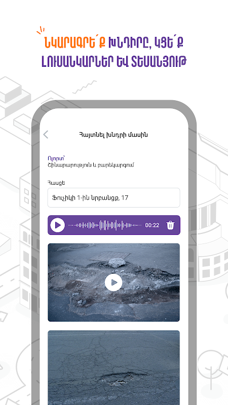 Bienvenue à Active Citizen Yerevan, votre passerelle pour co-créer une ville meilleure avec la municipalité ! Nous pensons que les résidents jouent un rôle essentiel dans l'élaboration de l'avenir d'Erevan, et cette application vous permet de participer activement à la valorisation de notre capitale bien-aimée.