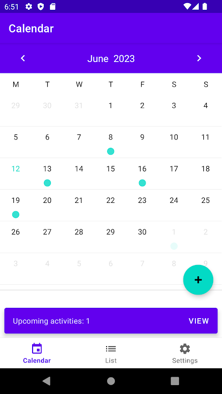 Vérifiez les activités dans le calendrier ou dans la liste chronologique et recevez une notification pour les activités à venir chaque fois que vous démarrez l'application.