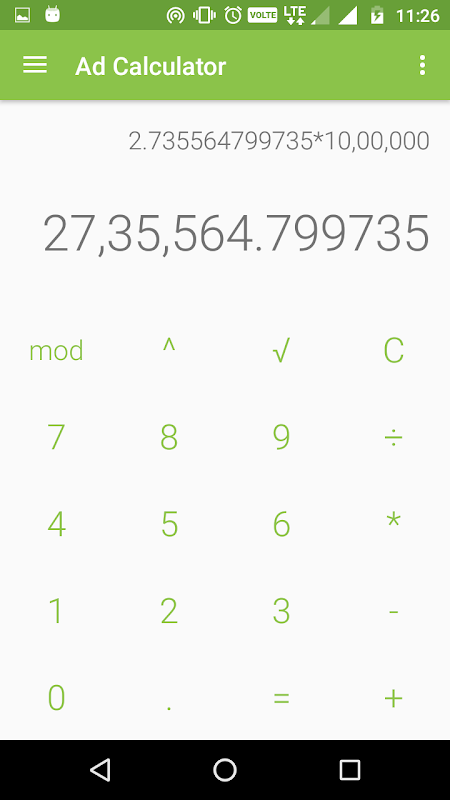 The Ad calculator has basic features of addition, subtraction, multiplication, division.