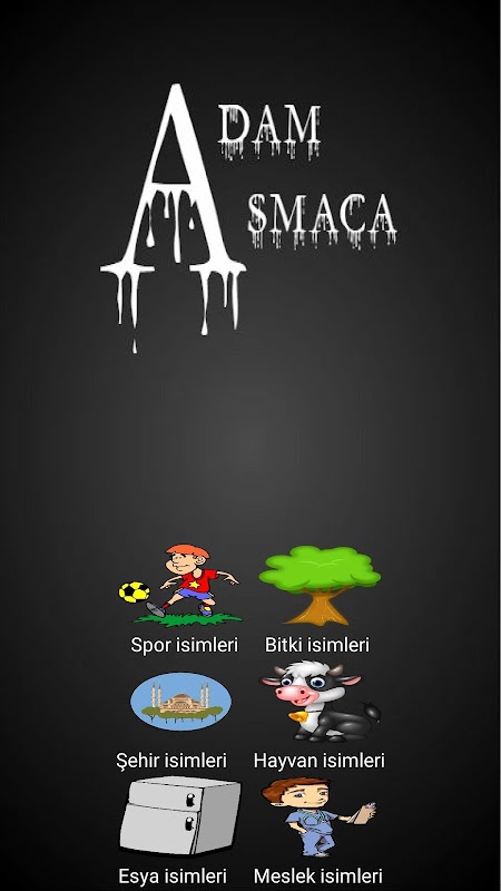 Adam Asmaca oyununda artık kategori seçimi de yapabilirsiniz. Bu oyun aynı zamanda internetsiz olarak da oynanabilmektedir.