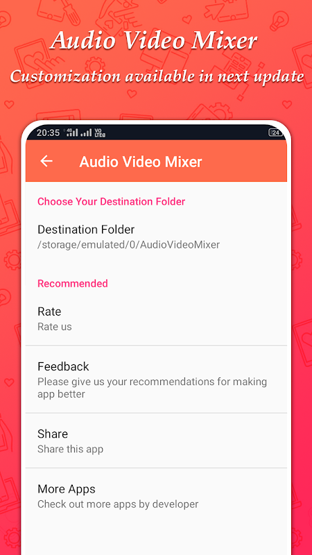Cette fonctionnalité permet à l'utilisateur d'ajouter de l'audio dans la vidéo à partir de la mémoire de son téléphone. L'utilisateur peut couper la vidéo et même couper l'audio multiple et les mélanger pour créer une seule vidéo compatible avec les téléphones Android.