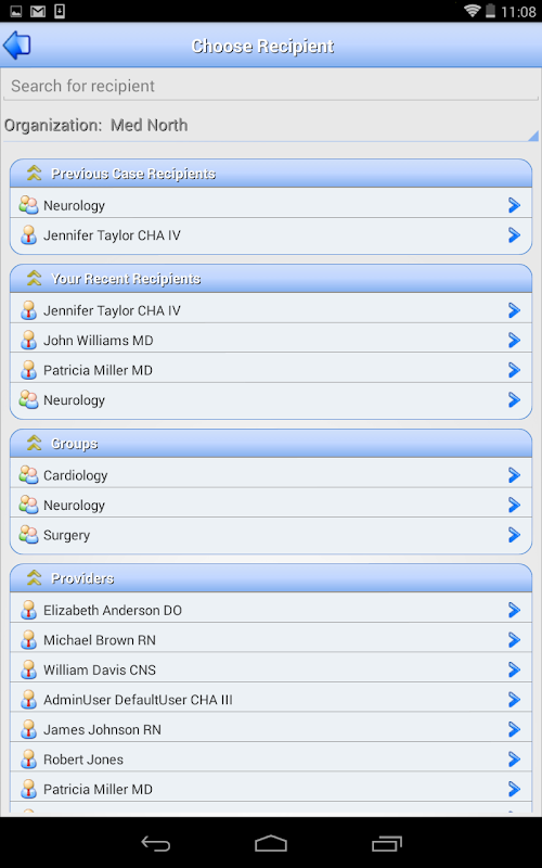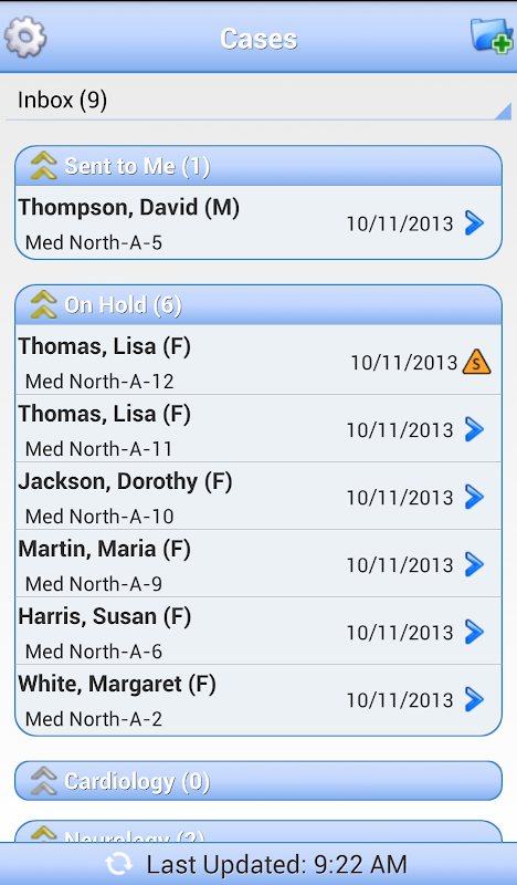 Connectez-vous à partir de votre smartphone AFHCANmobile et afficher les mêmes cas, vous verriez sur AFHCANweb dans le bureau. Voir votre liste de cas pour voir tous les nouveaux cas, seuls les cas ou envoyés à un groupe de destination spécifique.