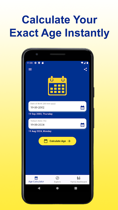L'application Age Finder est disponible en anglais, vous aidant à calculer votre âge exact à quelques secondes près ou même à déterminer votre âge dans 100 ans. L'application Age Calculator offre un moyen simple d'afficher et de partager votre âge exact à l'aide de son interface simple en anglais. Avec cette application, répondez à des questions telles que « Quel est votre âge ? » ou "Quel âge as-tu?" devient plus précis et amusant, le tout calculé par date de naissance.