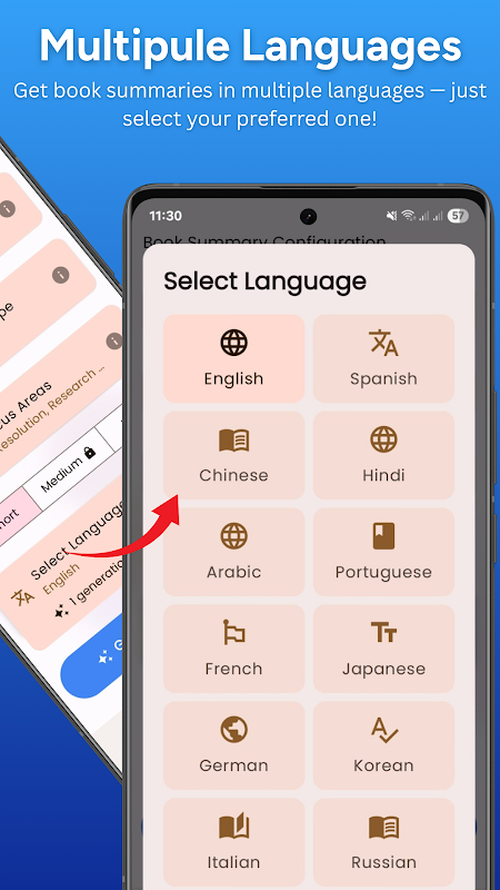 Notre outil de résumé de livres basé sur l'IA prend en charge 14 langues, dont l'anglais, l'espagnol, le chinois et bien d'autres. Obtenez des résumés de livres basés sur l'IA dans votre langue préférée pour une meilleure compréhension et une meilleure mémorisation.