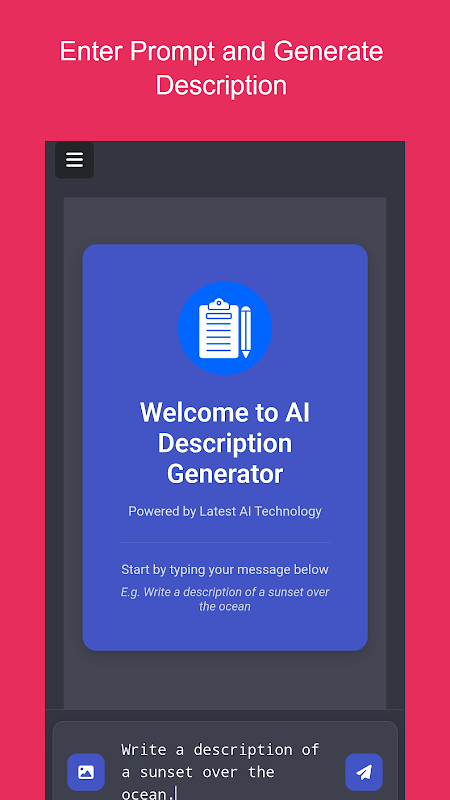 Besoin de descriptions attrayantes, détaillées et professionnelles ? L'application AI Description Generator est là pour vous aider ! Conçue pour créer des descriptions de haute qualité en quelques secondes, cette application exploite l'IA pour faciliter les descriptions de produits, de cours, de réseaux sociaux et bien plus encore. Que vous soyez un spécialiste du marketing, un propriétaire d'entreprise ou un créateur de contenu, AI Description Generator est votre solution incontournable pour des descriptions efficaces et accrocheuses.