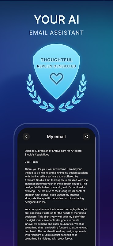 Efficacité améliorée : gagnez du temps et maintenez votre professionnalisme grâce aux e-mails générés par l'IA qui capturent parfaitement votre intention.