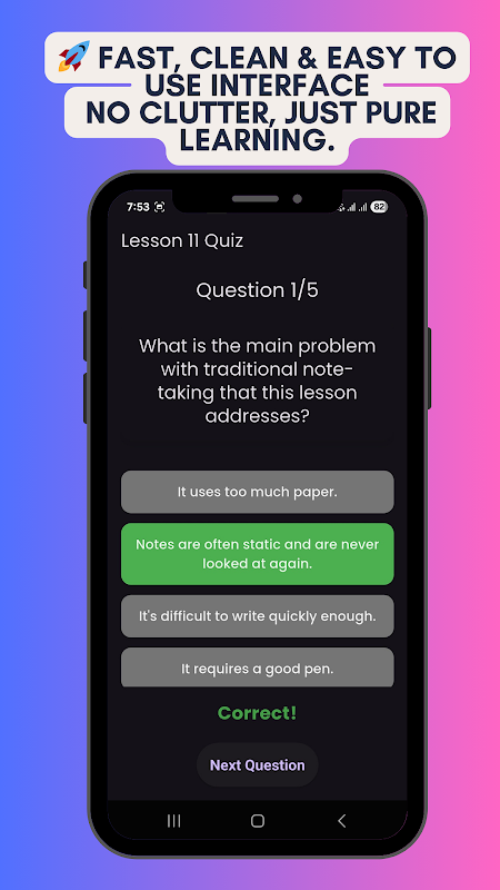 Une navigation simple et une conception épurée garantissent une expérience d'apprentissage ciblée.