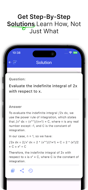 Pas envie de taper ? Aucun problème ! Utilisez le mode scanner pour résoudre instantanément des problèmes écrits à la main ou imprimés. Que ce soit pour la trigonométrie, les intégrales ou les équations différentielles, l'application fournit des solutions claires et détaillées.