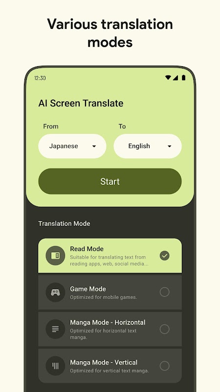 Avec AI Screen Translate, traduisez rapidement du texte depuis des sites web, des applications de messagerie, des livres numériques, des documents et bien plus encore, sans quitter l'application. Activez simplement le mode traduction et AI Screen Translate détectera et traduira automatiquement le texte affiché à l'écran en temps réel.
