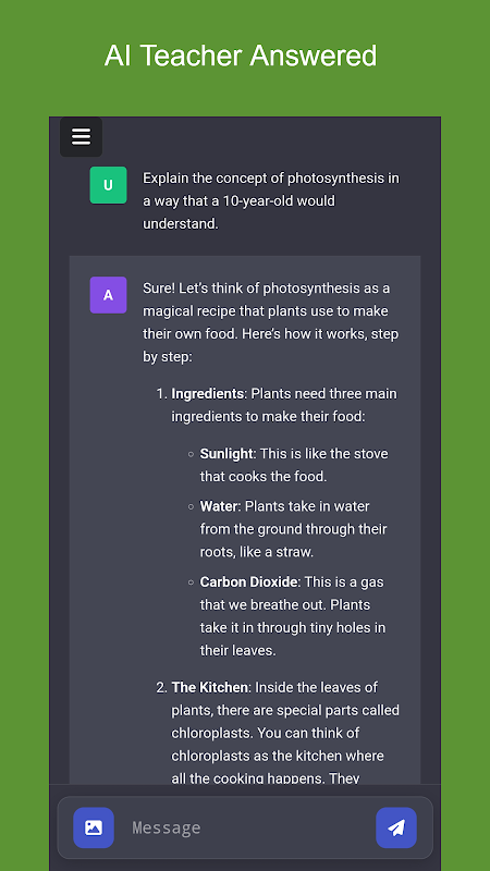 Explications : Obtenez des réponses claires et concises adaptées à votre niveau de compréhension. Des concepts de base aux sujets avancés, AI Teacher s'adapte à vos besoins.