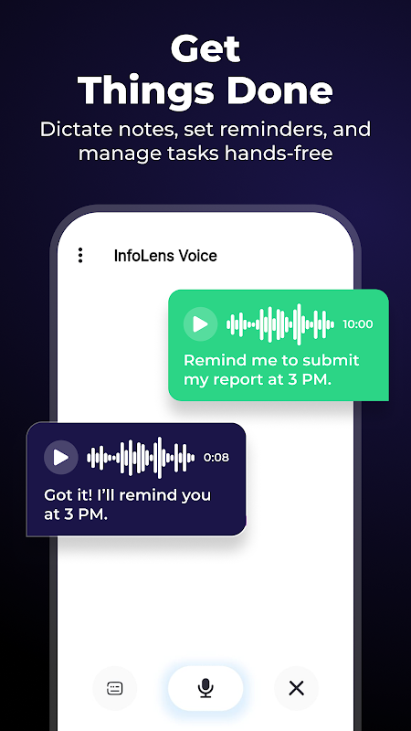 Dictez des notes, des plans, des e-mails et des rappels. Capturez vos idées avant qu'elles ne s'estompent. Accédez rapidement à des recherches et à des résumés concis.