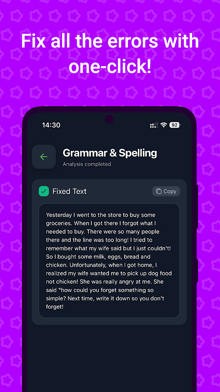 Choisissez les analyses à exécuter en fonction de vos besoins et de vos limites d'utilisation. Obtenez des résultats détaillés et interactifs qui mettent en évidence les problèmes spécifiques de votre texte. Les fonctionnalités premium incluent des corrections basées sur l'IA, comme la reformulation du contenu plagié ou l'humanisation du texte rédigé par l'IA.