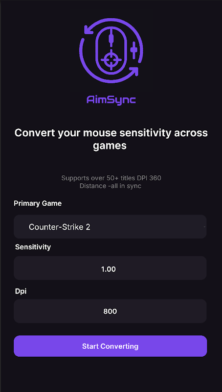 Que vous passiez de Valorant à CS2, Apex Legends ou Fortnite, AimSync garantit une sensibilité de souris identique, vous donnant ainsi l'avantage à chaque partie. Plus besoin de deviner, plus de temps perdu : des transitions de visée fluides et précises entre les jeux.
