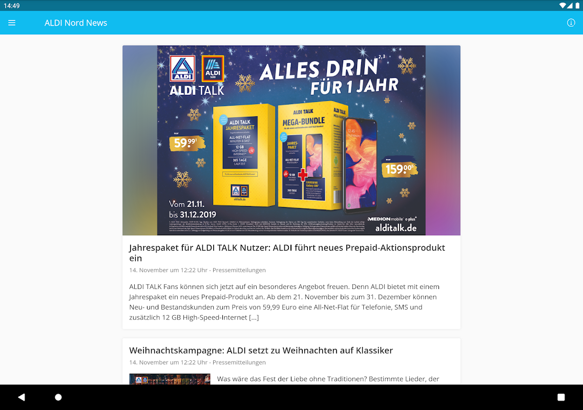Dans notre application ALDIaner, vous trouverez des informations sur le groupe de sociétés ALDI Nord - des actualités et communiqués de presse aux faits passionnants de l'histoire du groupe aux informations sur le monde du travail chez ALDI Nord.